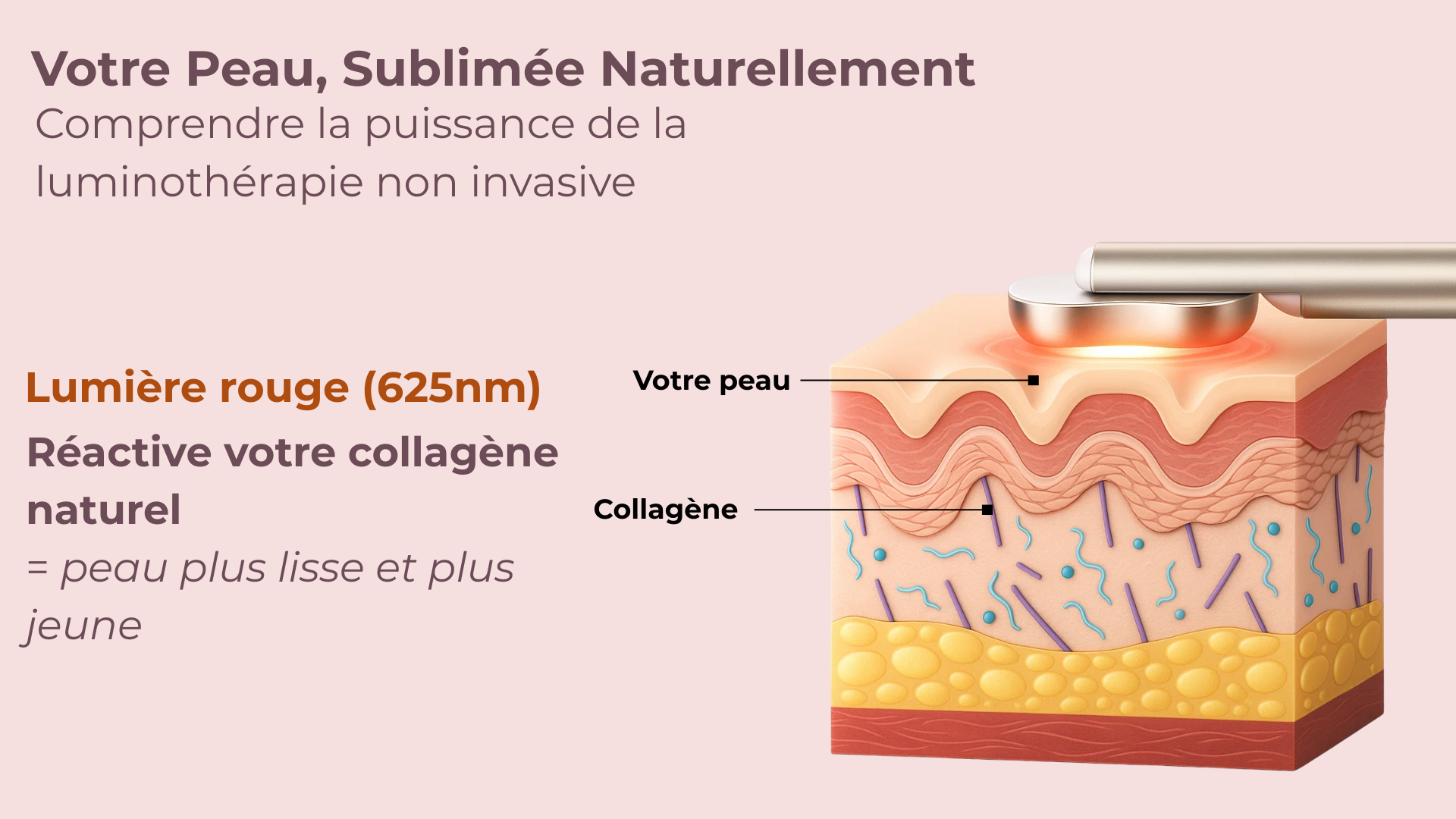 Cette technologie est aussi sûre qu'efficace ! Développée initialement pour la médecine spatiale, la lumière rouge thérapeutique est aujourd'hui largement utilisée en dermatologie et esthétique.