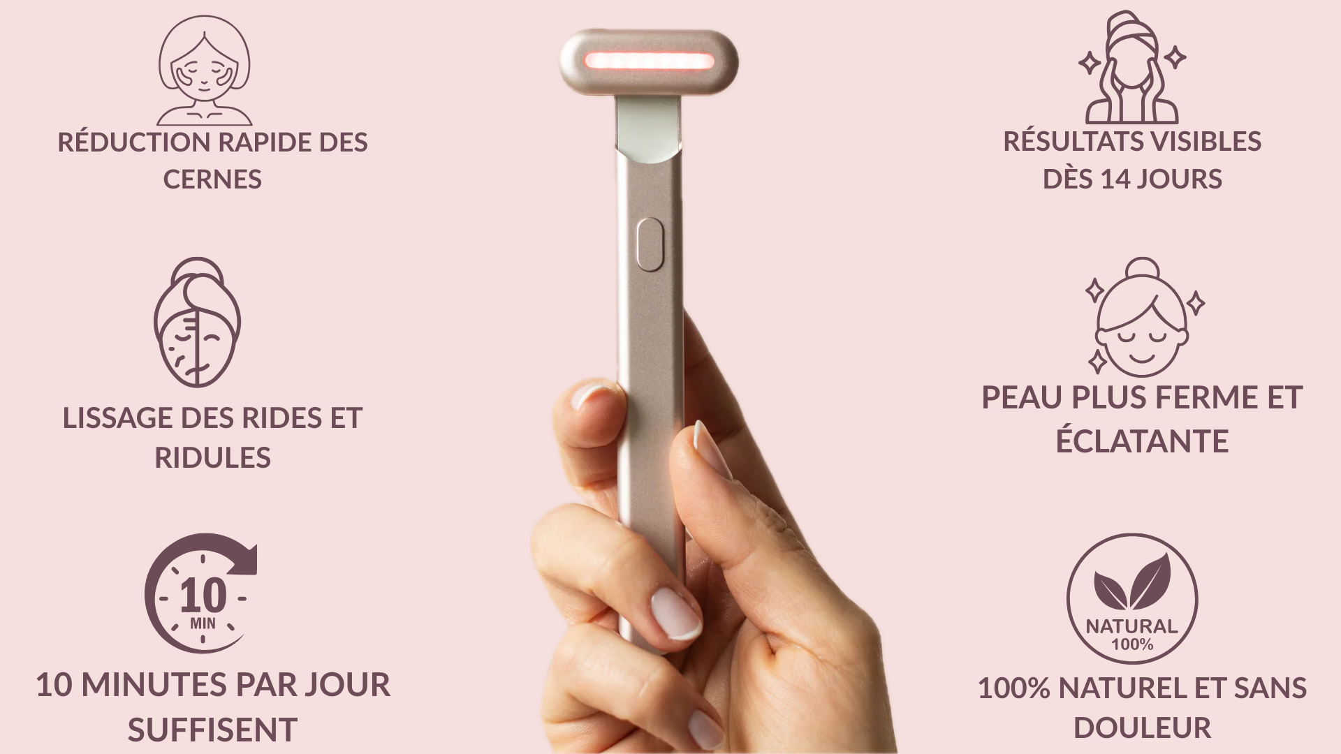 Aucun risque, aucun effet secondaire - juste les bienfaits de la lumière sur votre peau. L'appareil fonctionne de manière entièrement naturelle, sans produits chimiques ni interventions agressives.